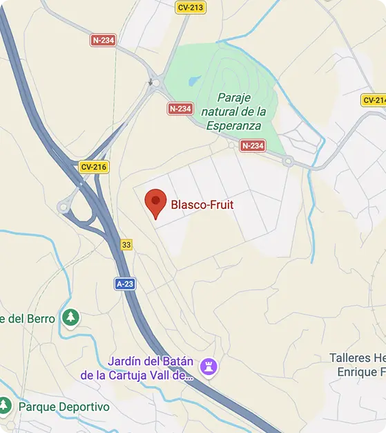 Your partner in yournext campaign Complete the form and we will respond as soon as possible. I have read and accept the privacy policy Pol. Ind. La Esperanza. Calle Galicia, nº 16 Segorbe, Castellón, Spain +34 964 10 84 53 info@blasco-fruit.com