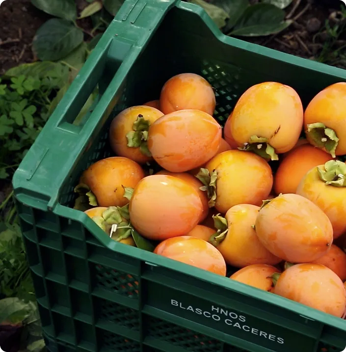 Production and export of Spanish persimmons (kaki persimmon and kaki tomatero), grown under certified quality standards. Our model of in-house production and process control from the field to the customer guarantees fresh fruit, traceability, and quality.